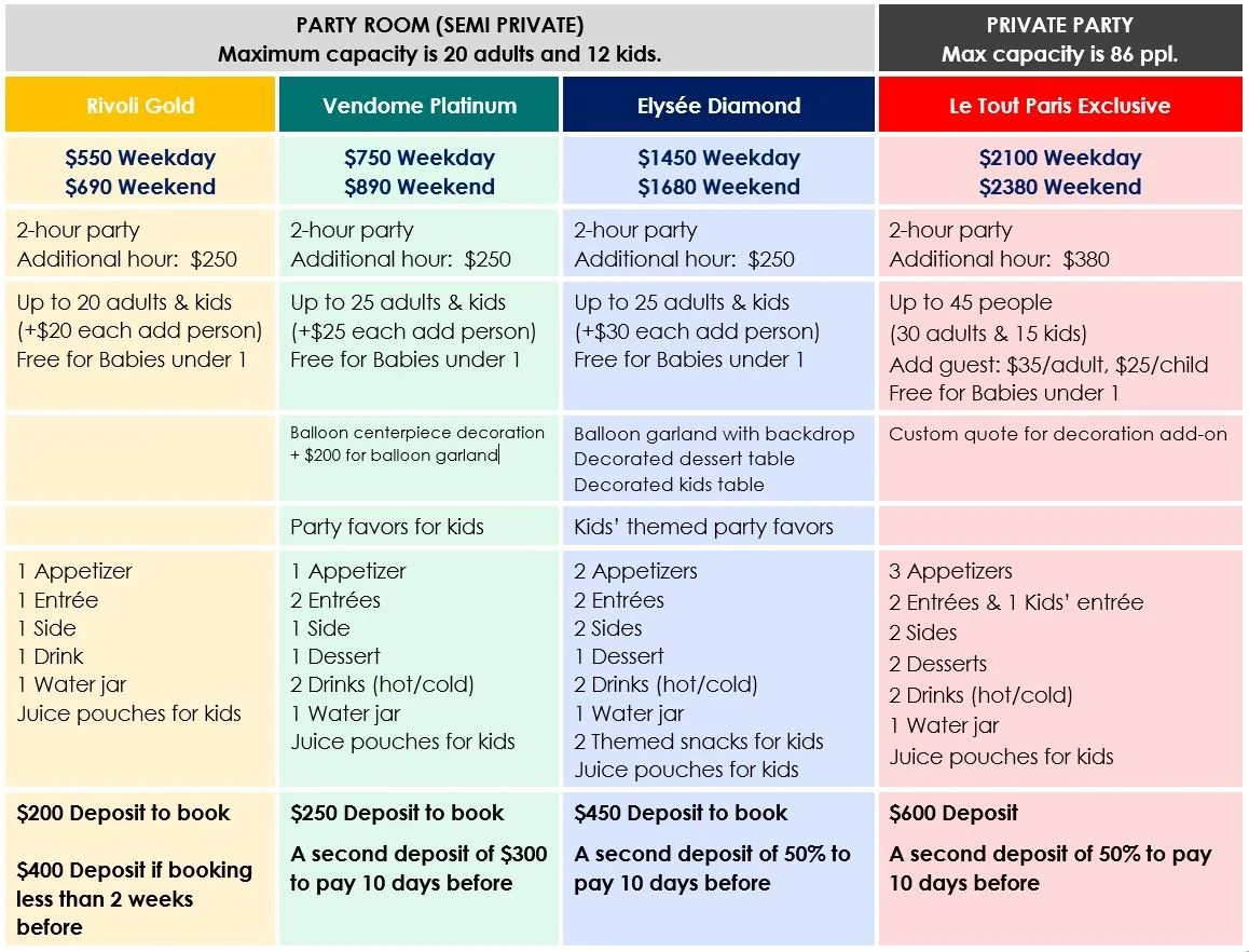 My Little Paris offers different party packages to choose from so you can select what best fits your needs. From baby showers, baptism, birthdays and more… You’ll find a reason to party!